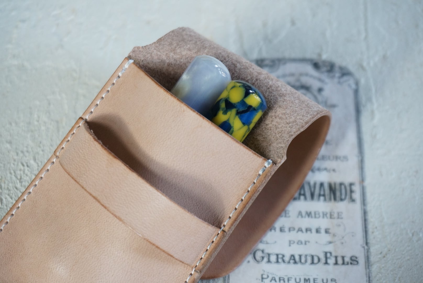 手作り革製品専門店Jill Craft (ジル・クラフト)様にてイタリアンレザーを使用したシュクル用ペンシースを製作してくださっています。