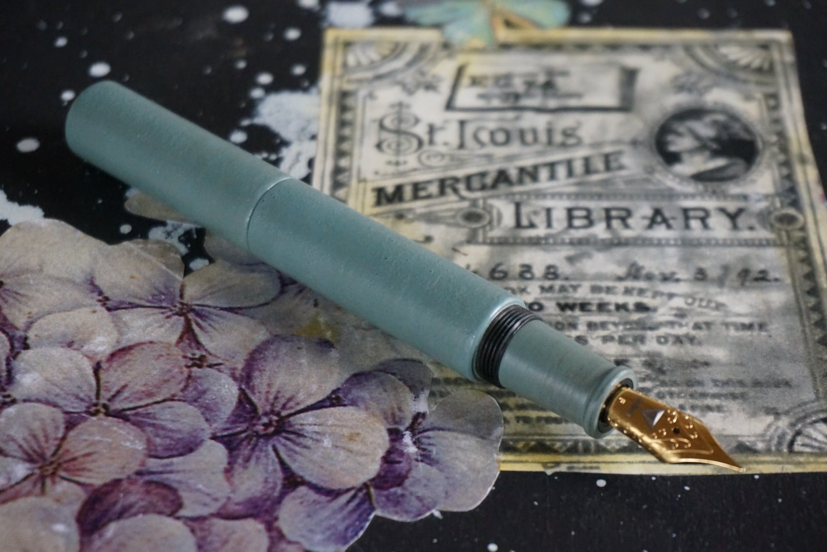 helico×中田陽平 漆塗り万年筆「青灰猫」炭粉叩き
